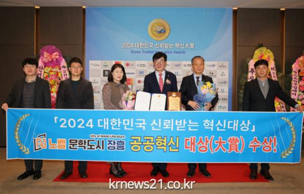 ▲ 사진=장흥군 장흥군이 지난 2일 열린 ‘2024 대한민국 신뢰받는 혁신대상’시상식에서 공공혁신 대상을 수상했다.