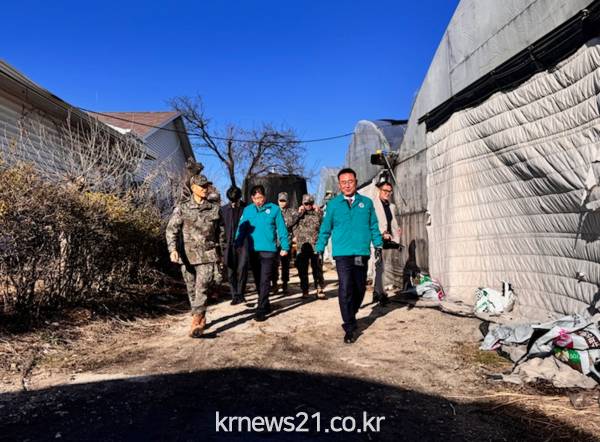 ▲ 사진=여주시이충우 여주시장은 12월 6일, 최근 폭설로 피해를 입은 농가를 방문하여 피해 농민들을 위로하고 복구 현장에서 구슬땀을 흘리는 군 장병들을 격려했다.