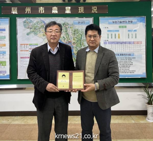 ▲ 사진=여주시여주시 농업기술센터 김상민 축산미생물팀장이 농촌지도 분야에서 지역농업 발전에 기여한 공로를 인정받아 지난 11월 19일 농촌진흥청이 주관하는 ‘2024 한국농업기술보급대상’을 수상했다.