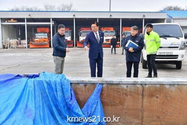 ▲ 사진=장성군김한종 장성군수가 11일 제설차량기지를 방문해 정비 현황을 점검했다.