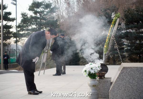이날 강 시장은 현충탑에 헌화와 분향을 진행하고 나라를 위해 희생한 순국선열과 호국영령의 숭고한 희생정신을 기리는 묵념을 올렸다.