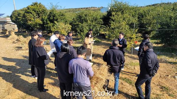 고흥군(군수 공영민)은 유자 동해 예방을 위해 지난 24일 풍양면 유자공원 내에서 농업인들을 대상으로 현장 시연회를 실시했다고 밝혔다.