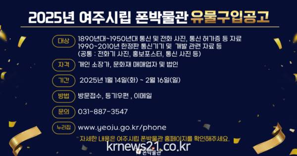▲ 사진=여주시여주시(시장 이충우)의 여주시립 폰박물관에서는 1980년대부터 1950년대의 통신 관련 자료와 1960년대부터 2010년대까지의 한정판 통신기기를 구입하기 위해2025년도 유물 공개 구입을 진행한다.
