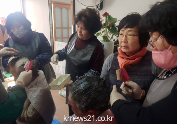 장흥군여성친화도시모니터단 회원들은 부산면 6개소, 장흥읍 6개소 경로당을 방문하여 200여 명의 어르신들에게 간식을 제공하고 염색 봉사를 하였다.