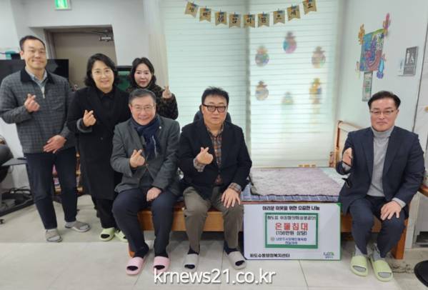 ▲ 사진=남양주시화도읍이장협의회(회장 김용완)와 녹촌2리(성생공단)는 17일, 남양주시 장애인 주간이용시설 ‘하늘아래’에 대형 온돌 침대를 후원했다.
