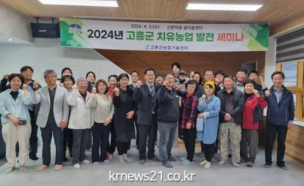▲ 사진=고흥군청고흥군(군수 공영민)이 지난 3일 포두면 신촌 꿈이룸센터에서 치유농업시설 운영자와 치유농업을 희망하는 농업인과 농업기술센터 관계자 등 30명이 참석한 가운데 치유농업 발전 세미나를 개최했다고 밝혔다.