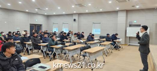이날 가지오이연구회 연시총회에서는 2025년 연구회 운영 방향에 대한 논의가 이루어졌으며, 농기계(항타기) 시연 및 안전교육도 진행되었다.