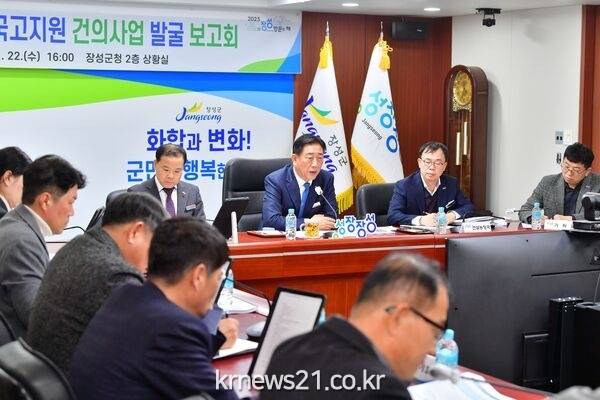 ▲ 사진=장성군장성군이 내년도 국비 확보를 위한 발빠른 대응에 나섰다. 군은 22일 군청 상황실에서 김한종 장성군수 주재 ‘2026년도 국고건의사업 발굴보고회’를 가졌다.