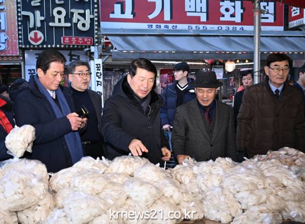 ▲ 사진=구리시청백경현 구리시장은 24일 설 명절을 앞두고 구리전통시장에서 박규창 구리전통시장 상인회장, 이춘본 구리시경제인연합회 회장 등을 비롯한 관계자 20여 명과 함께 설 명절 맞이 ‘전통시장 장보기의 날’ 행사를 가졌다.