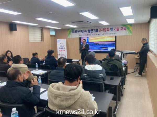 ▲ 사진=여주시여주시(시장 이충우)는 지난 1월 23일(목), 여주시농업기술센터에서 여주시 쌀연구회 연시총회 및 기술교육을 개최하였고 밝혔다. 이번 총회에서는 권순우 쌀연구회장을 비롯한 쌀연구회원 30여 명이 참석하였으며, 2024년 사업결산 및 기술교육, 2025년 연구회의 발전 방안을 위한 토론을 진행하였다.