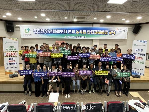 ▲ 사진=고흥군청고흥군(군수 공영민)은 지난 12일 농업기술센터에서 한국농업경영인·한국여성농업경영인 고흥군 연합회원 52명을 대상으로 ‘농작업 안전 재해예방 교육’을 추진했다고 밝혔다.