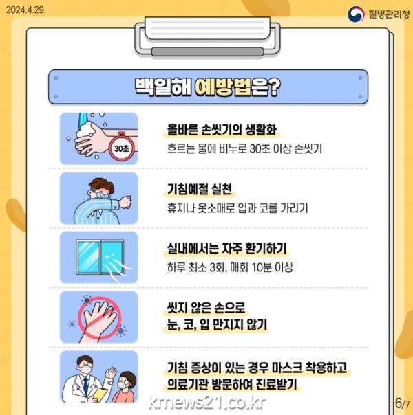 백일해는 호흡기 분비물이나 비말을 통해 전파되는 감염력이 매우 높은 2급 감염병으로 평균 7~10일의 잠복기를 거쳐 발작성 기침으로 시작해 구토 등을 유발하고, 14일 이상 ’훕(Whoop)’하는 소리를 내는 특징적인 기침을 한다.