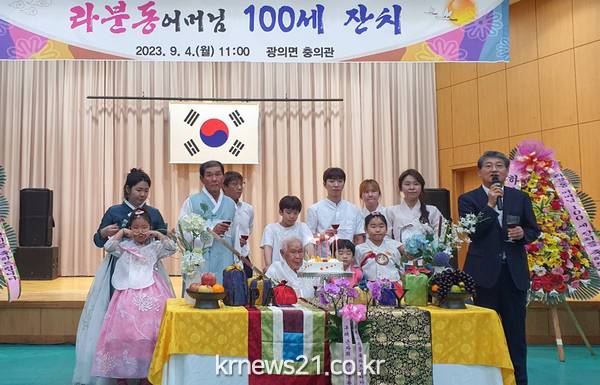 ▲ 사진=구례군청전남 구례군은 9월 4일 광의면 다목적면민회관에서 백수연 잔치를 열었다고 밝혔다.