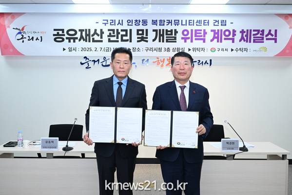 ▲ 사진=구리시청구리시(시장 백경현)는 2월 7일(금) 구리도시공사와‘인창동 복합커뮤니티센터 건립을 위한 공유재산 관리 및 개발 위탁 계약’을 체결했다고 밝혔다.