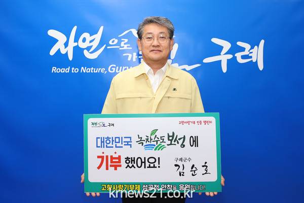 ▲ 사진=구례군청김순호 구례군수가 고향사랑기부제의 성공적인 안착과 기부문화 확산을 위해 '고향 사랑 기부 인증 참여 잇기'에 동참했다.
