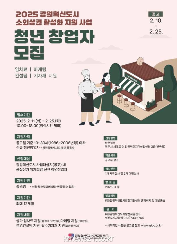 ▲ 사진=강원특별자치도□ (재)강원혁신도시발전지원센터(센터장 이달환)는 강원혁신도시 내 소외된 상권을 활성화하고, 심각한 공실 문제를 해결하기 위해 예비 청년창업자를 대상으로 임차료 지원 사업을 새롭게 추진한다.