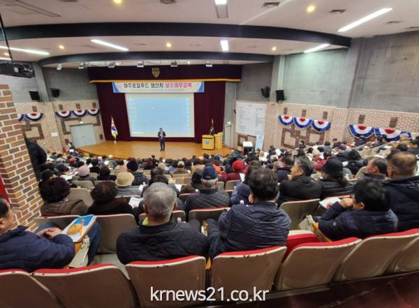 ▲ 사진=여주시여주로컬푸드 사회적협동조합은 지난 25일(화) 여주대학교 마로니에홀에서 여주로컬푸드 출하 농가 회원 400여 명이 참석한 가운데 ‘여주로컬푸드 생산자 보수의무교육’을 개최하였다.