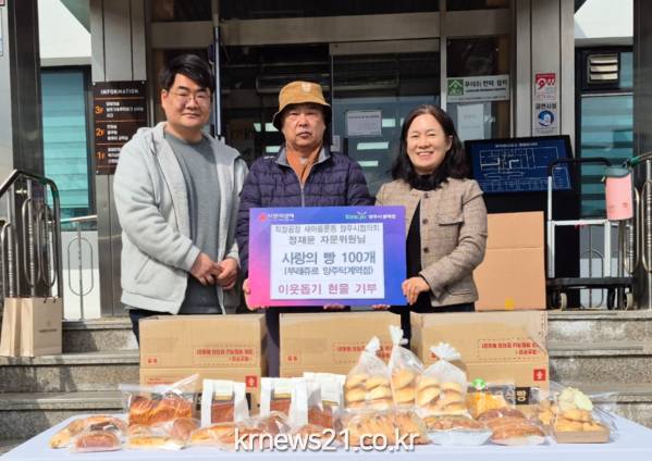 ▲ 사진=양주시청양주시 광적면(면장 송수진)이 지난 25일 직장공장 새마을운동 양주시협의회(회장 오수영)에서 지역 내 취약계층을 위해 ‘사랑의 빵 100개’를 기부했다고 밝혔다.