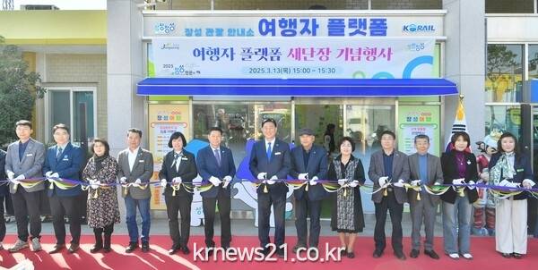 ▲ 사진=장성군장성군이 13일 장성역 내에 위치한 ‘여행자 플랫폼’에서 새단장 기념행사를 가졌다. 김한종 장성군수와 심민섭 장성군의회 의장 및 군의원, 김봉수 전라남도문화원연합회 회장, 임춘임 전라남도문화관광해설사연합회 회장, 지역사회단체 관계자 등 100여 명이 함께했다.