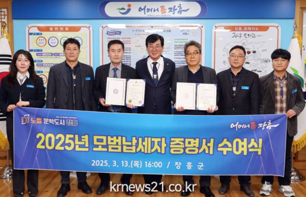 올해 장흥군의 모범납세자는 최근 3년간 체납 사실이 없고 연간 3건 이상의 지방세를 납부기한까지 전액 납부한 개인과 법인으이다.