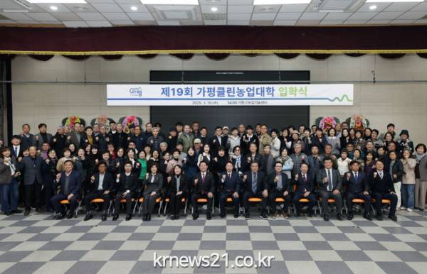 ▲ 사진=가평특별군가평군(군수 서태원)이 19일 군 농업기술센터에서 농업전문인력 양성을 위한 ‘제19회 가평클린농업대학 입학식’을 개최했다.