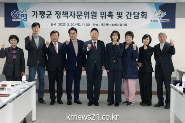 ▲ 사진=가평특별군가평군(군수 서태원)이 지난 20일 정책자문위원과의 소통을 강화하고 군정 운영의 전문성을 높이기 위해 간담회를 개최했다.