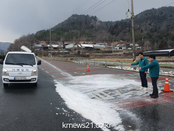이 부군수는 현장에서는 구제역 긴급백신접종 진행상황과 공동방제단 운영현황을 보고받고 관계자들을 격려했다.