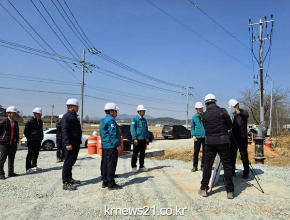 ▲ 사진=장흥군장흥군은 지난 21일 해빙기 및 여름철 자연재난 대비 장평면 양촌리 일원의 노선지구 자연재해위험지구 공사현장과 배수펌프장 등을 이천영 부군수 및 민간전문가와 함께 합동 점검을 실시했다고 24일 밝혔다.