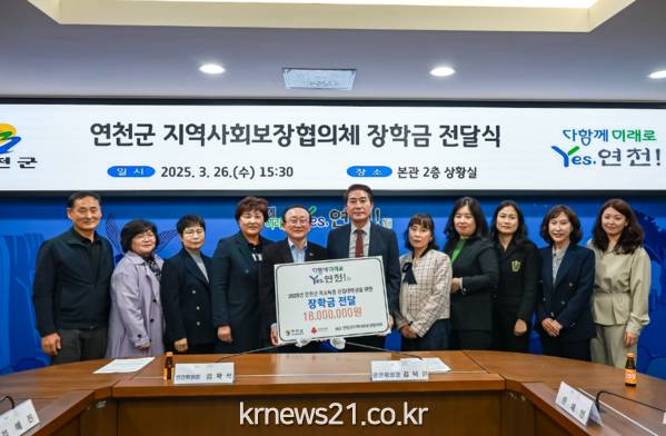 앞서 장학금 지급을 위해 연천군에 주소를 둔 기초생활보장수급자 및 법정차상위계층, 2025년 대학교 신입생 총 18명이 선정됐으며, 이날 신입생 1인당 장학금 100만원을 받았다.