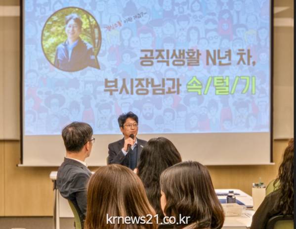 또한, 『속털기(공직생활 N년차, 속마음 털어놓기)』 익명 온라인 사전 설문조사를 통해 직원들의 마음을 헤아리고, 다년간의 공직 생활에 대해 서로 꾸밈없이 이야기하는 소통의 시간을 가졌다.