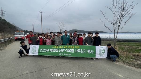 ▲ 사진=담양군청담양군 용면은 지난 27일 제80회 식목일을 기념해, 추성리 도로변 유휴지에 자연과 사람이 함께하는 나무 심기 행사를 추진했다.