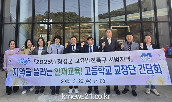 장성군이 최근 황룡면에 마련된 회의 공간(필그림)에서 고등학교 학교장들과 간담회를 가졌다. 곽영호 장성부군수, 학교장, 교육 관계자 등 10여 명이 참석했다.