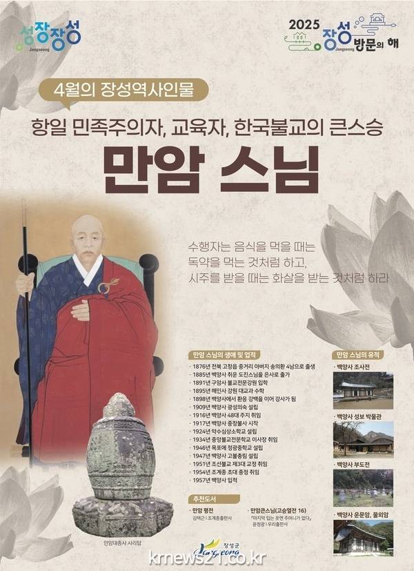 ▲ 사진=장성군장성군이 4월의 장성역사인물로 ‘만암 스님’을 선정했다고 밝혔다.