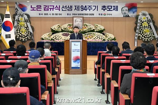 ▲ 사진=구리시청구리시(시장 백경현)는 4월 20일 오전 11시 구리시보훈향군회관 대강당에서 ‘노은 김규식 선생 제94주기 추모제’를 개최했다.