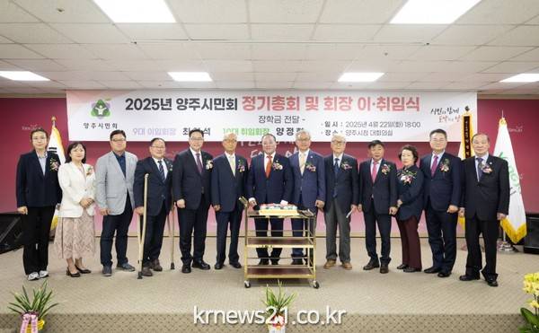 ▲ 사진=양주시청양주시의 대표 시민단체인 양주시민회(회장 양정현)가 지난 22일 양주시청 지하 대회의실에서 ‘2025년 정기총회 및 제9·10대 회장 이·취임식’을 열고 새로운 출발을 알렸다.
