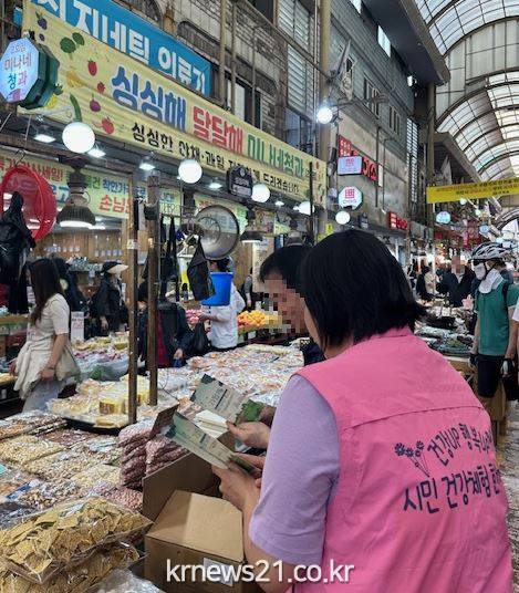 ▲ 사진=구리시청구리시(시장 백경현)는 일상에서의 올바른 건강생활 수칙을 알리기 위해 지난 23일 구리전통시장에서 수택보건지소와 보건소 웰빙건강증진센터 합동으로 비만 예방 관리 캠페인을 개최했다.