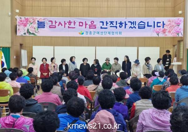 ▲ 사진=장흥군청장흥군여성단체협의회(회장 이성숙)는 2일 대덕읍 다목적회관에서 노인일자리 사업 참여자 등 지역 어르신을 모시고 ‘어버이날 효 행사’를 진행했다.