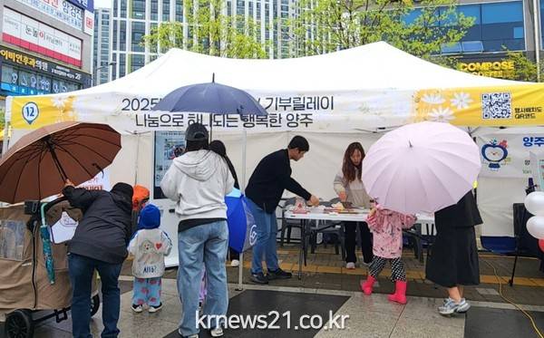 이번 체험 부스는 ‘2025년 함께하는 온기! 기부 릴레이 – 나눔으로 하나되는 양주’를 슬로건으로 시청 본관 1층에 상시 운영 중인 이동식 나눔 키오스크를 축제 현장에 특별 설치해 시민들이 직접 기부를 체험할 수 있도록 했다.