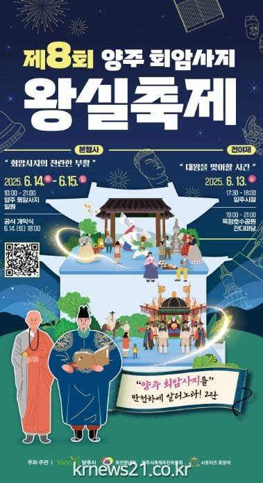 한편, 경기 북부 대표 역사문화축제로 자리 잡은 ‘양주 회암사지 왕실축제’는 올해 ‘런케이션(learn+vacation)’이라는 새로운 문화축제 모델을 제시하며, 역사 체험과 시민 참여, 휴식을 아우르는 풍성한 프로그램으로 시민과 관광객을 맞이할 예정이다.