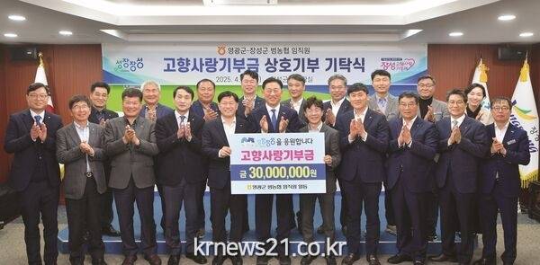군에 따르면 최근 장성군 범농협 임직원 230명과 영광군 범농협 임직원 240명이 각각 고향사랑기부금 3000만 원을 기부했다. 기탁식에는 김한종 장성군수, 장흥모 농협중앙회 영광군지부장 등 5개 사무소 관계자, 조상길 농협중앙회 장성군지부장 외 8개 사무소 관계자 등 20여 명이 함께했다.김한종 장성군수는 “범농협의 적극적인 동참이 지자체 간 협력과 고향사랑기부제 활성화에 크게 기여할 것”이라며 “기부금은 군민 복리 증진 등 다양한 사업에 사용하겠다”고 말했다.고향사랑기부제는 개인이 주소지 외 지방자치단체에 연간 2000만 원 이내로 기부하면 세액공제 혜택과 답례품을 받을 수 있는 제도다.