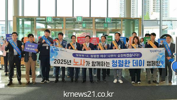 ▲ 사진=여수시 여수시(시장 정기명)는 지난 7일 오후 시청 문화홀에서 공무원노동조합과 함께하는 ‘청렴한 데이’ 청렴 실천 운동(캠페인)을 진행했다.