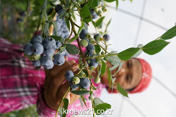 항산화 슈퍼푸드 해남 블루베리가 본격적으로 수확되고 있다.