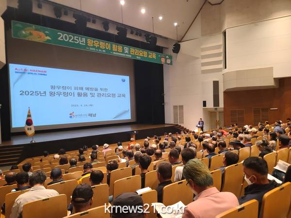 지난 4월 24일 해남문화예술회관 대공연장에서 열린 교육은 왕우렁이 활용농가 400여 명을 대상으로 왕우렁이 활용 및 관리요령 교육을 실시했다.