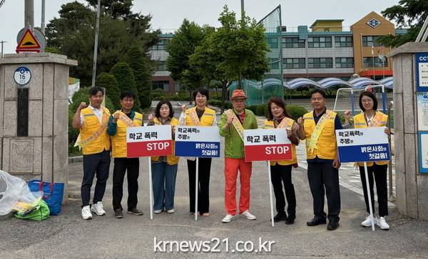 ▲ 사진=포천시포천시 가산면 청소년지도협의회(위원장 현영식)은 지난 23일 학생들의 하교 시간에 가산면행정복지센터와 함께 경북중학교 정문에서 학교폭력 예방 캠페인을 실시했다.
