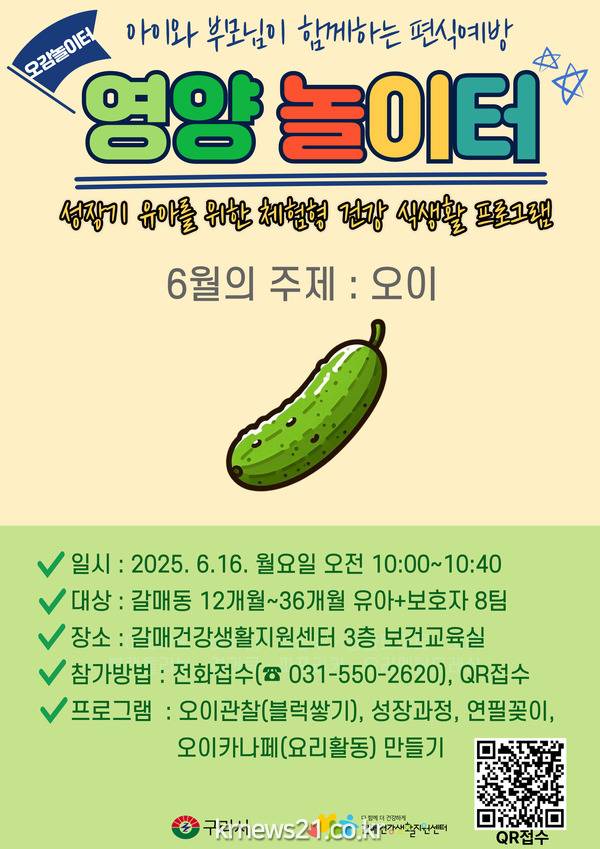 ▲ 사진=구리시청구리시(시장 백경현) 갈매건강생활지원센터는 성장기 유아의 편식 예방을 위해 오는 6월 16일 보건교육실에서 진행하는 체험형 건강 식생활 프로그램 ‘영양 놀이터’ 참여자를 모집한다.