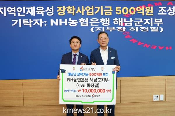 하정필 NH농협은행 해남군지부장은“농협은행은 단순한 금융기관을 넘어 지역 주민과 함께 성장하는 지역밀착형 은행으로의 역할을 충실히 수행하고 있다”며“장학사업기금 기탁은 지역사회 발전과 인재 양성에 직접적으로 기여하는 상생의 실천으로,함께할 수 있어 기쁘게 생각한다”고 밝혔다.