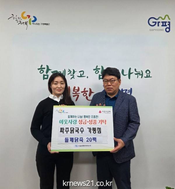 ▲ 사진=가평특별군가평군 가평읍 마장리에 위치한 파주닭국수 가평점이 최근 조종면행정복지센터를 통해 지역 어르신들을 위한 들깨닭죽 20팩을 기탁했다.