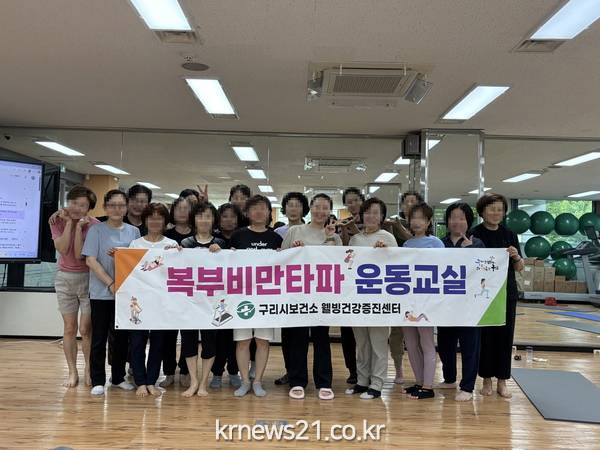 ▲ 사진=구리시청구리시(시장 백경현)는 지난 29일 시민들의 비만 예방 및 관리를 위해 3월부터 3개월간 실시한 복부비만타파 운동교실 1기 수료식을 가졌다.