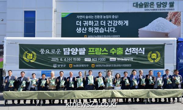 담양군과 담양농협쌀조합공동사업법인은 지난 4일 봉산면 담양통합RPC에서 ‘2025년 담양쌀 프랑스 수출 선적식’을 열었다.