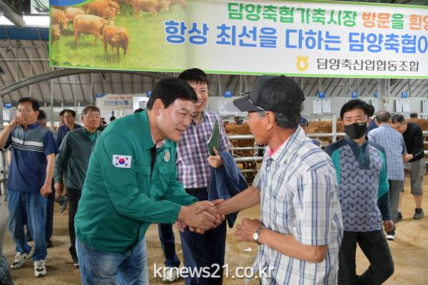 이날 가축시장에는 정 군수를 비롯해 강종문 담양축협조합장 등이 참석했으며, 264마리의 한우가 경매에 부쳐졌다.